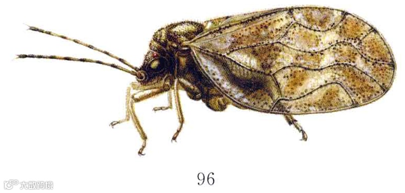 ②少数以卵越冬,如梧桐裂木虱Carsidara limbata,过冬卵一般产在芽鳞上的隐蔽处。