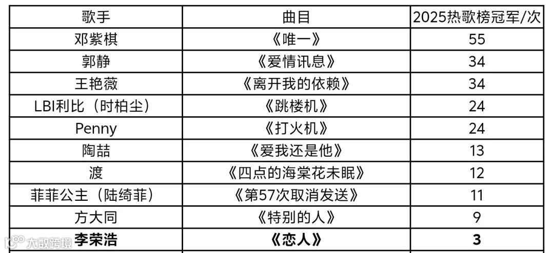 1、李荣浩《恋人》3连冠。