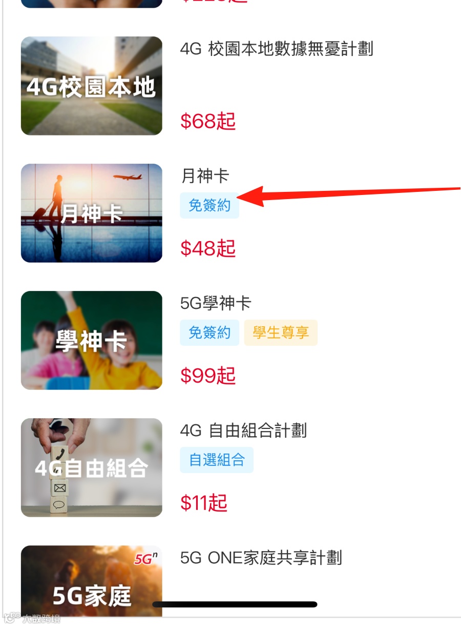 打开中国联通香港的app或者官网,点击月费计划