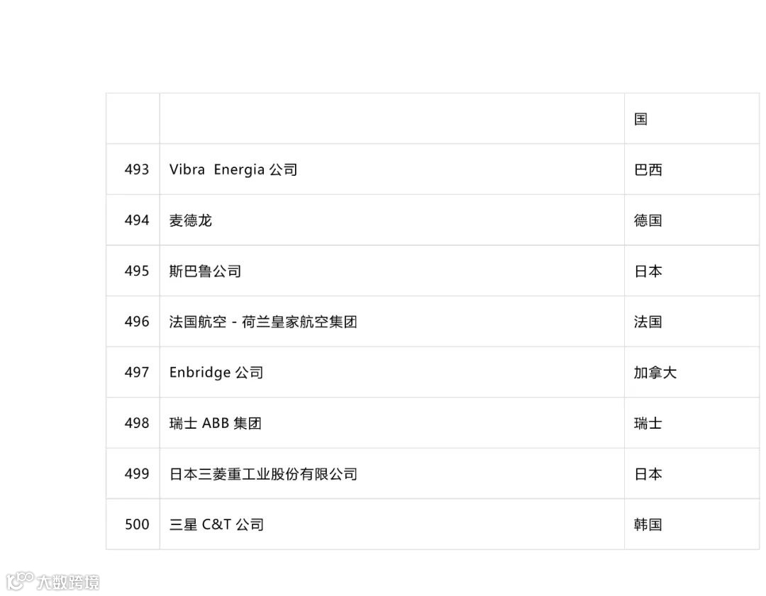 中、美、日三国合计占据榜单62%的企业数量、67%的营收总额和65%的利润总额[k]。日本今年有40家企业上榜,位列第三[k]。