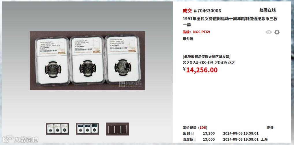 最近,一件惊世骇俗的事情在收藏界掀起了波澜:3枚1991年的全民义务植树运动十周年精制流通纪念币竟然在某拍卖平台上以14256元的高价成交。