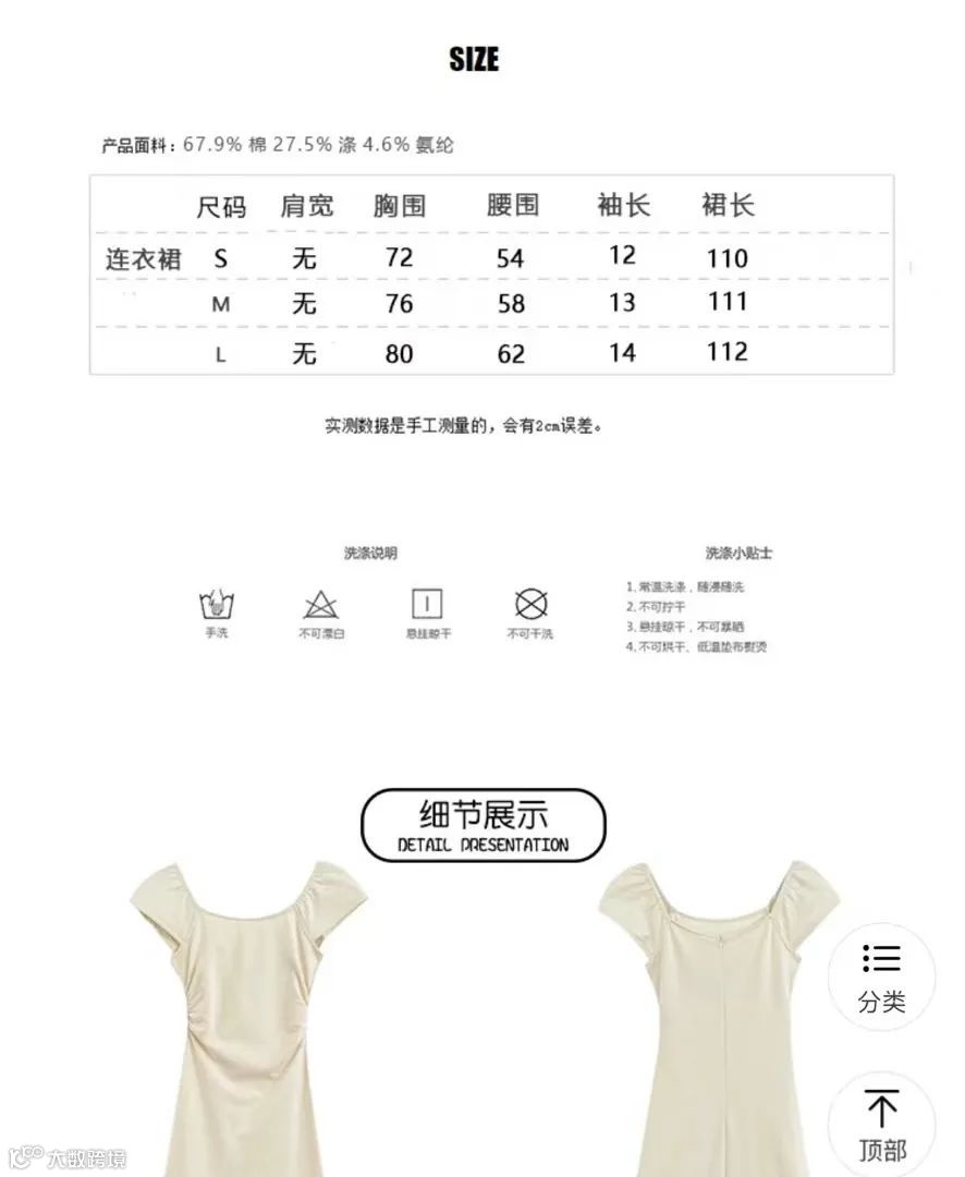 詹达平时也经常购买紧身款式的服装,虽然她会按照商品详情页的尺码表选购,但到货一测量,她往往会发现衣服的实际尺码跟尺码表差距很大。“这并不是小概率事件。”