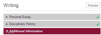 1、Personal Essay:有些学校要求学生在Common上提交个人陈述,有些学校则不需要,在这个页面会看到添加的学校里面哪些学校是需要的,哪些学校是不需要的。但是一般比较好的学校都会要求学生写个人陈述。Please write an essay (250-650 words) on the topic selected. 请选择一下任意一个topic,写一篇250-650个字的个人陈述。
