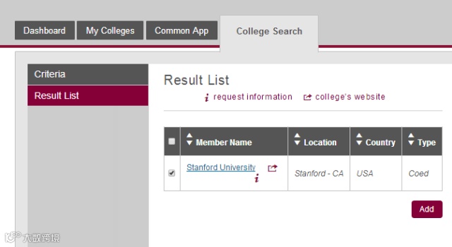 15、College lookup:查找学校,国内的学校大多找不到,选择 “I don’t see the college I’m looking foron the list.”,自己输入家长毕业大学的官方英语名称和大学地址。
