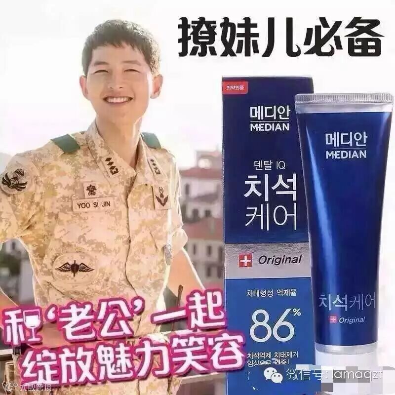 宋仲基的老婆们,你老公喊你刷牙了!每天早晨和大尉在同一个清新中唤醒,是不是一件烂漫的事呢?韩国爱茉莉麦迪安86牙膏,超高性价比,美白去除牙渍牙结石,清新的味道加上去除口中异味的功效深受大家的喜爱,白色膏体里面有很多小颗粒!小小清洁颗粒让泡沫深入牙齿缝隙清洁污洉,刷的更加舒服,清爽,从而抑制牙石牙垢的生成,祛除牙渍,达到美白效果。像国内牙膏有的我们盖子忘了盖时,下次用就会出现凝固挤不出来现象,因为国内很多牙膏凝固剂是超标的,86牙膏不会这样,真正的微粒牙膏(蓝色:去牙结石尤其适合抽烟人士,灰色美白牙齿保护牙龈,红色深层清洁去口气)