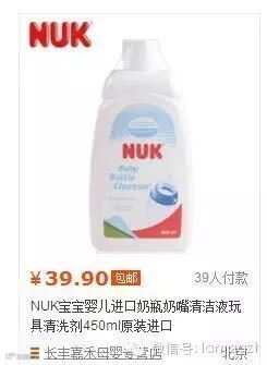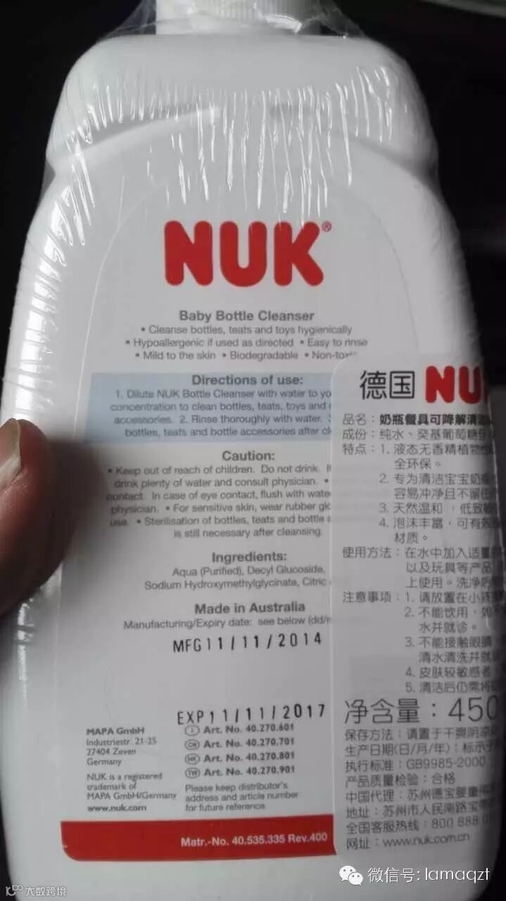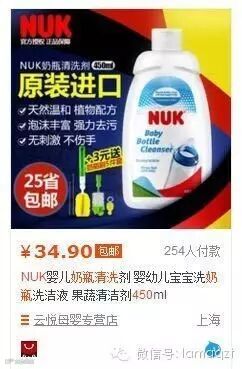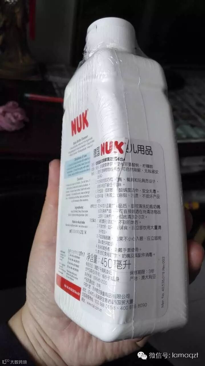 另外还有nuk的奶瓶清洗剂,植物配方,可降解,非常安全,洗后无泡沫,给新生儿和小月龄的孩子清洗奶瓶、餐具、牙胶、其他玩具,最合适不过了,nuk奶瓶清洗剂,淘宝一般都在39以上,甚至50多一瓶,这次总代做活动,团购价格29元包邮除偏,450毫升,很耐用。非常给力