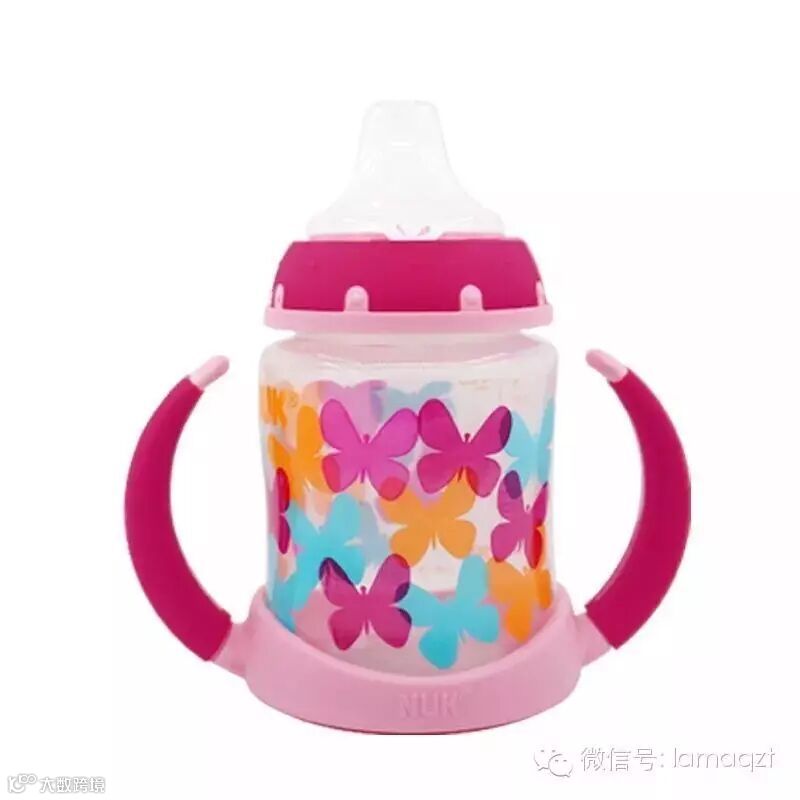 六个月开始用鸭嘴学饮杯,1岁后用吸管杯或被子直接喝水喝奶,对宝贝的牙齿有好处。德国原装NUK学饮杯鸭嘴杯,6个月起宝宝适用。顾名思义就是给6个月大的宝宝喝水用的杯子。造型把手宝宝易握,不滑手设计,可以让宝宝自己学着拿着喝水。鸭嘴型的口,宝宝轻轻吸一下就能出水。很好用。鸭嘴头可以取下换成奶嘴头,非常实用。