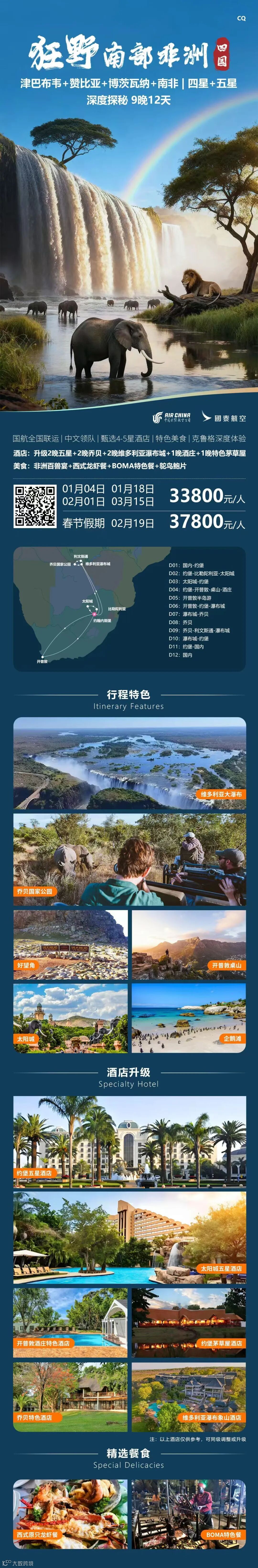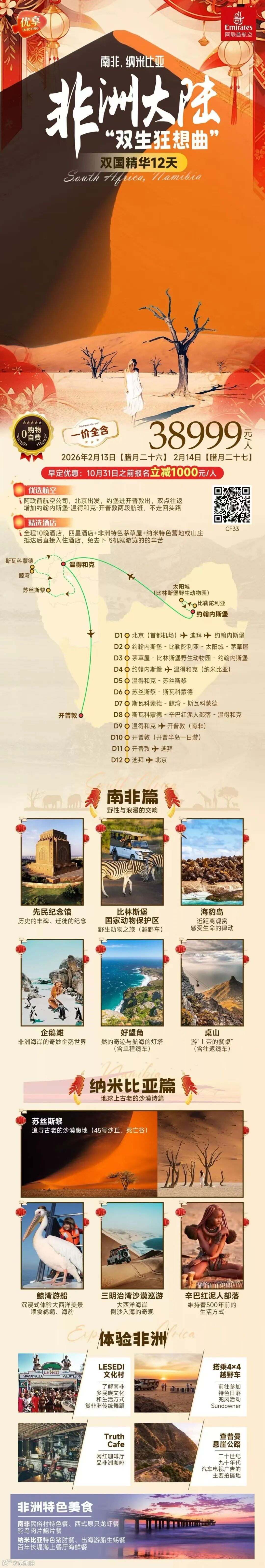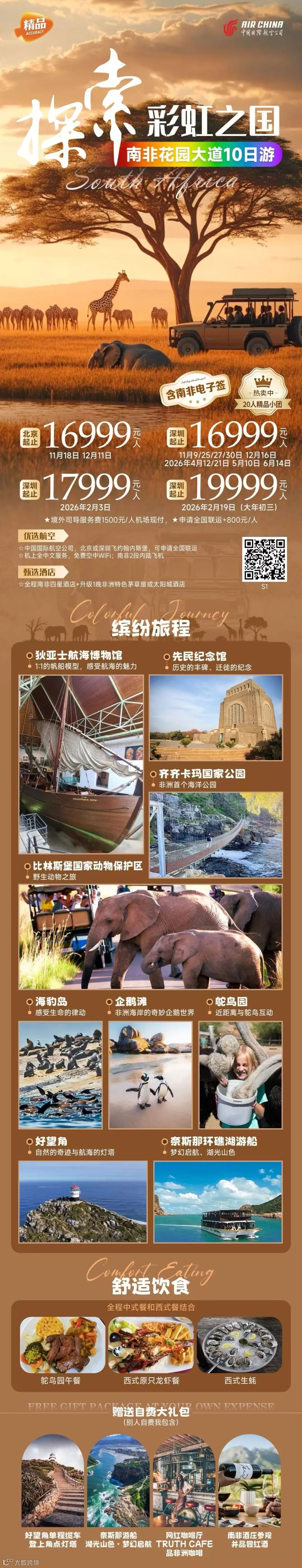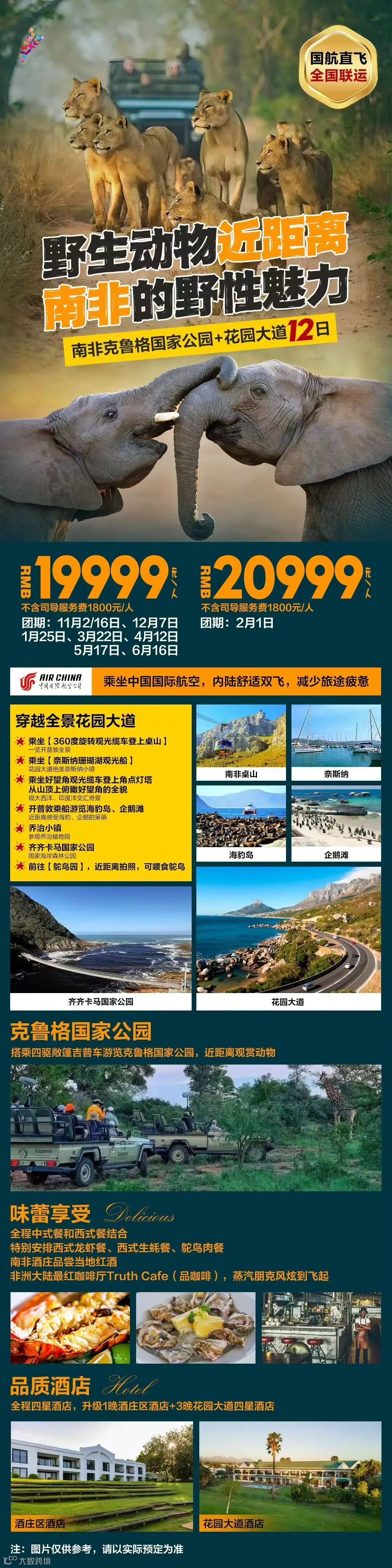 🏨全程四-五星酒店,特别升级太阳城、约翰内斯堡共2晚五星酒店,乔贝连住2晚