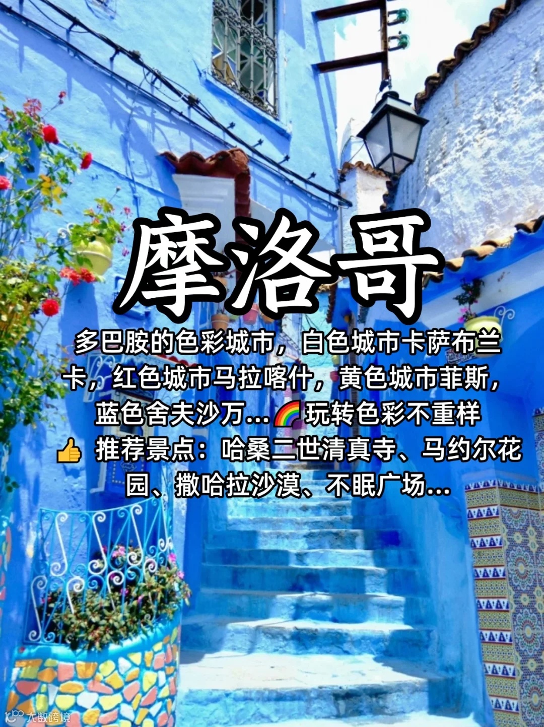 色彩斑斓的国度,白色城市卡萨布兰卡、红色城市马拉喀什、黄色城市菲斯、蓝色小镇舍夫沙万…每一座城市都有它独特的色彩和故事。