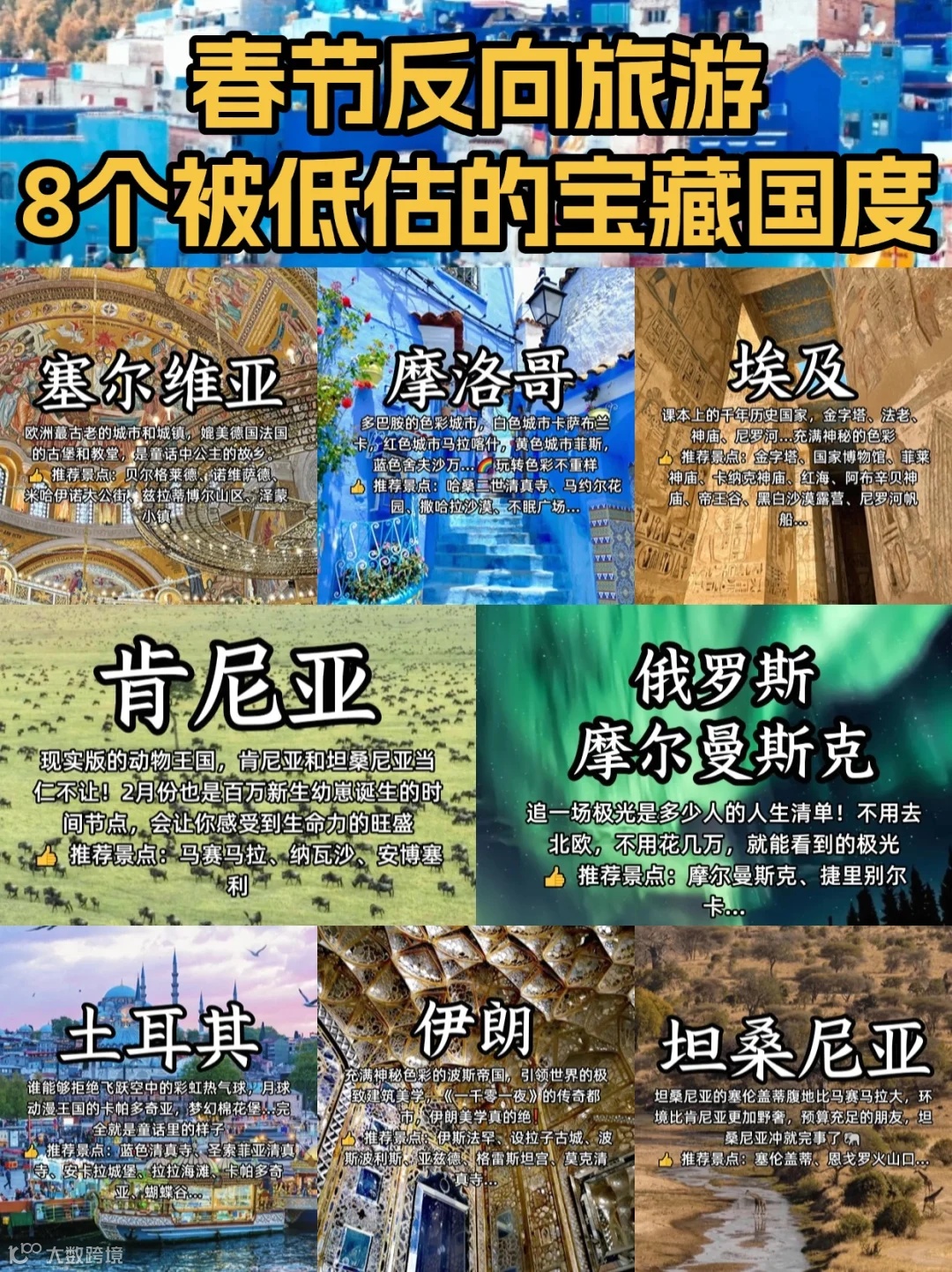 这个春节,你准备好出行计划了吗?🎒这8个“反向旅游”国家,如果你感兴趣,就收拾好行装,心动就出发吧!🚀
