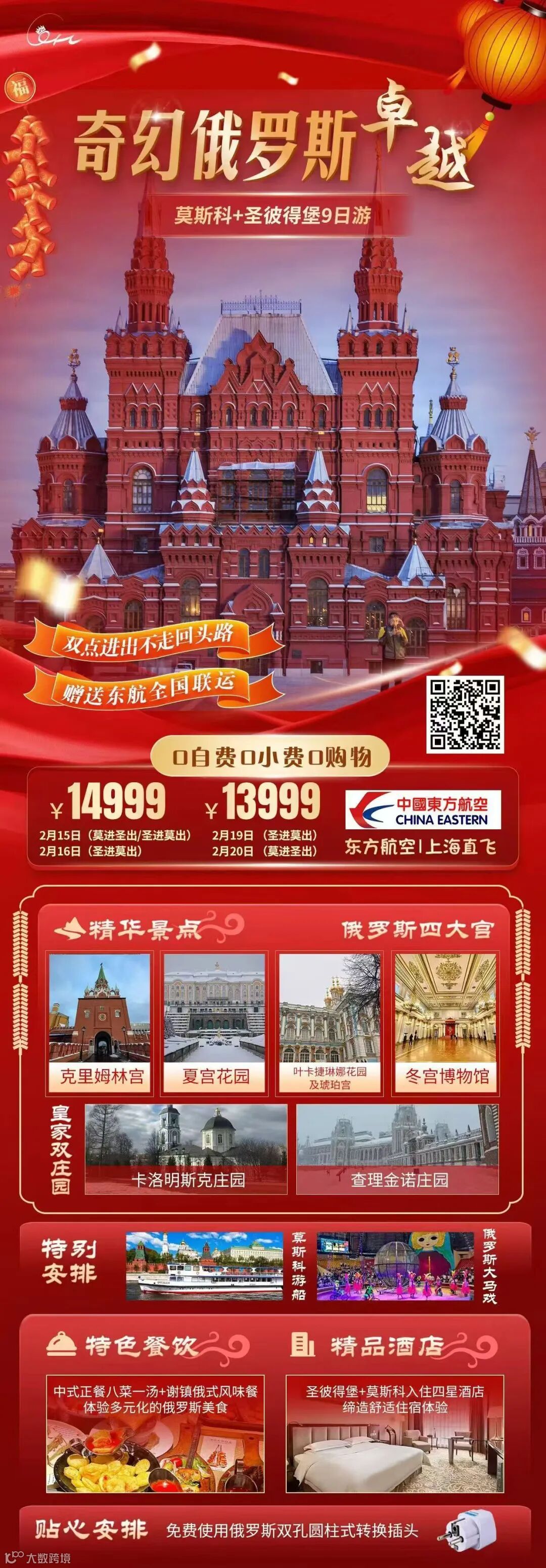 🇷🇺俄罗斯双首都+双庄园+双小镇9天尊享深度游