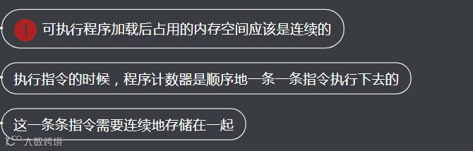 1、可执行程序加载后占用的内存空间应该是连续的