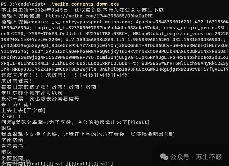 然后是批量下载微博评论,工具下载地址在公众号后台对话框回复 微博,打开工具输入微博链接和网页版微博cookie就行 总有人问我 cookie 到底是什么?