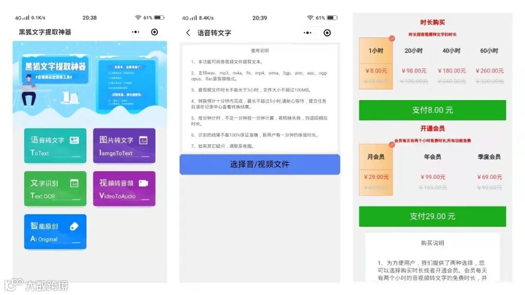 缺点:收费小程序,转写只支持手机中已经下载好的文件,没有网页版,操作起来比较麻烦。