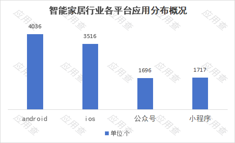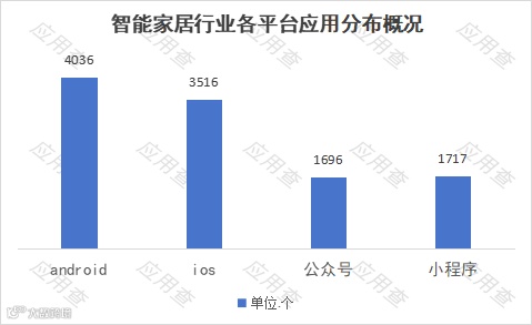 “智能照明“(如:“欧享家“App,“云灯智控“App)、“智能安防“(如:“智家365“App,“萤石云视频“App),排名最后为“智能娱乐“(如:“吉视家“App,“ 遥控精灵“App)目前占有率较低。