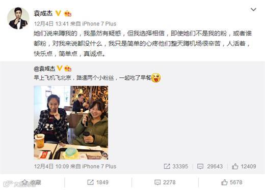 前些日子,袁成杰因为晒了张和接机粉丝一起享用早餐的温馨照片,莫名被捧上了热搜。