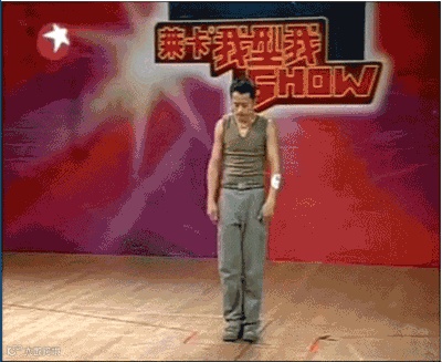 ▲比赛期间,青涩张杰与其魔性舞步 (笑)