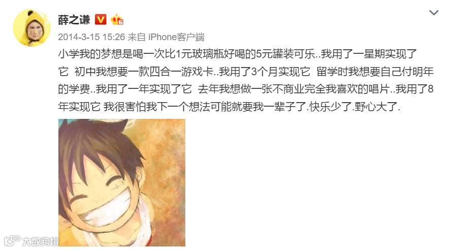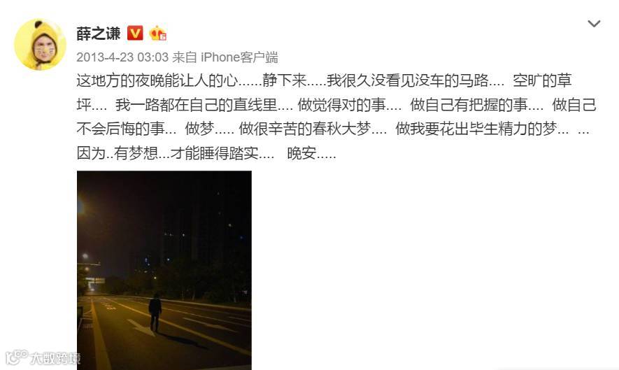 那几年微博的字里行间里也偶尔出现郁郁不得志的迷惘与惆怅,是信念支撑着一个追梦人踉跄地走到如今。