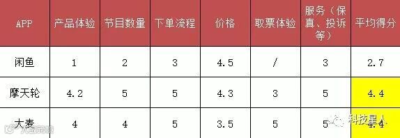 摩天轮总分得分4.4,和大麦得分持平,两者各有各的优势。