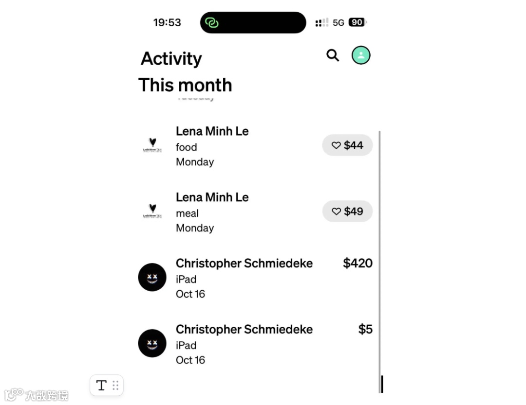 投资股票、购买比特币等功能。 它的操作方式更像“美国版的微信支付 + 支付宝”,在年轻人和自由职业者圈子里几乎人手一个。