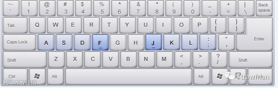 左手除拇指外的四根手指分别放在FDSA上,右手分别放在JKL;上,这时你会发现F键和J键上都有一个突起,这也是方便我们找位置的(见图四)。