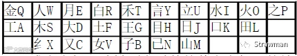 举例:军=PL,P=“冖”,L=车;初=PUV,P=衤去掉冫,U=冫,V=刀;