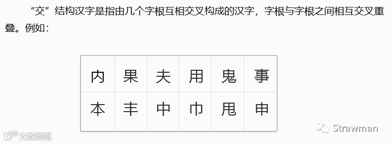 举例:母=XGU,X=母字的外框部分,G=一,U=两点;互=GXG,G=一,X=母字的外框部分变形,G=一;