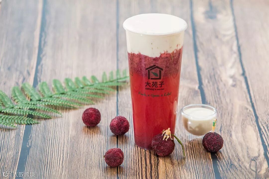 一到杨梅成熟的日子,店里就会上架这款杨美梅水果奶盖。所有的杨梅果肉都是现切、去核,一杯里满满的杨梅果肉。