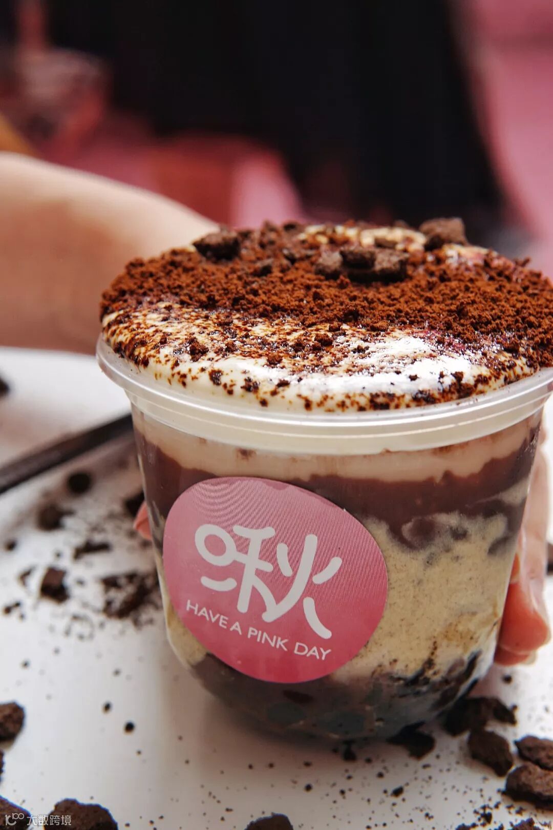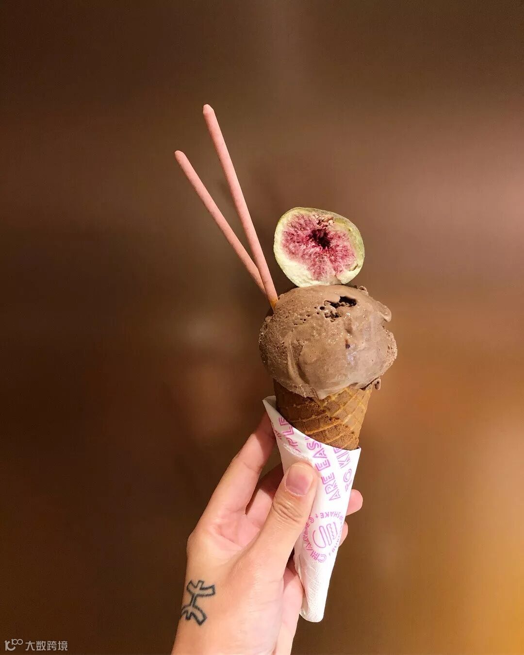 对,就是那家粉红汉堡店!连蛋筒也是纯手工现做,70.5%比利时巧克力,甜度比普通冰淇淋低,更加突出了巧克力风味~还加入了麦丽素,每一口都酥脆!