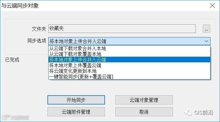 点击顶部“用户”>>>与云端同步对象>>>同步选项(选择:将本地对象上传合并入云端)>>>开始同步>>>开始同步>>>已完成,图示如下: