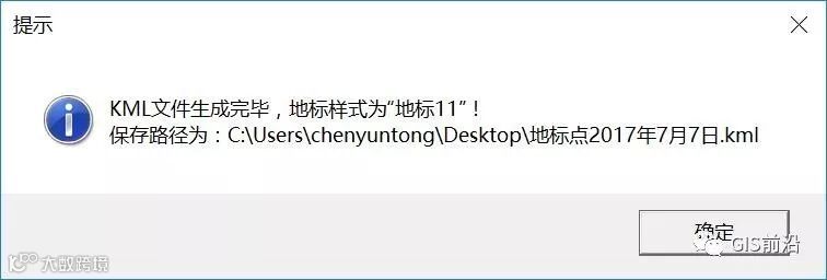 提示:KML文件生成完毕,地标样式为“地标11”,在点击生成按钮之前请先选择地标样式图标。