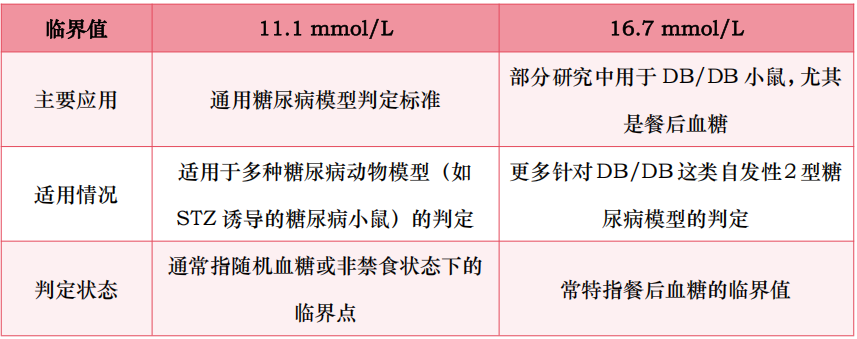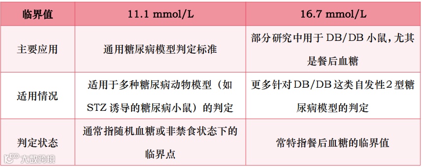 DB/DB小鼠的血糖临界值,你会看到11.1 mmol/L和16.7 mmol/L这两个数值都被提及,它们其实分别对应了不同的判定场景。