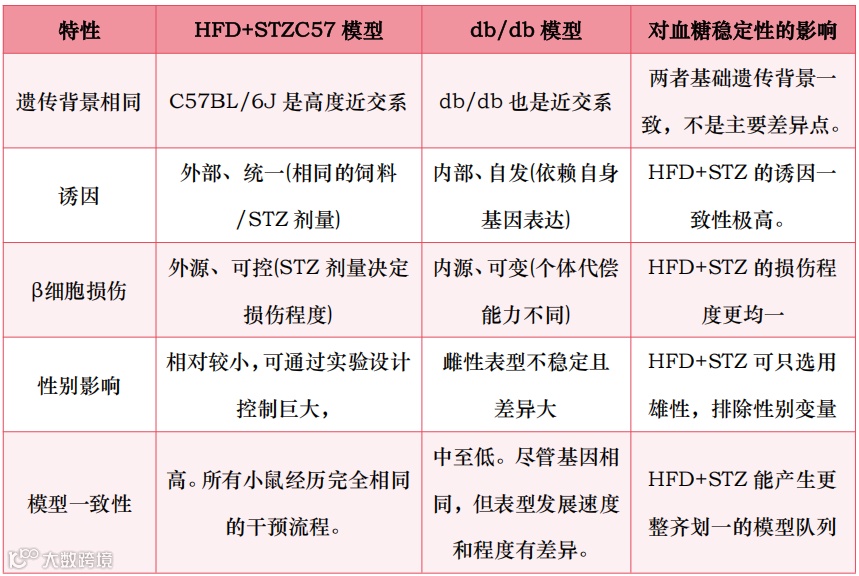 表2 DB/DB与HFD/STZ诱导小鼠稳定性差异原因