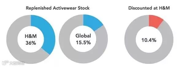 但是和ZARA一样,都是把服装从耐用消费品变革为快速消费品的革新者,因此质量也就不那么重要了。其中H&M最出彩的地方,当属运动衣,这个系列在国内不卖(至少我出国的时候国内还没有),估计人家觉得中国人不爱运动。其实H&M的运动衣做的很专业,分类很细(有跑步,网球,甚至还有瑜伽),价格便宜,比阿迪耐克便宜不是一点,因此大受欢迎,销量很出彩。下面的图是H&M运动衣在2013年的Replenishment Rate(补货率?不知道该怎么翻译),达到了36%,最后打折出售的只占10.4%(ZARA的存货周转率这么高也还有15%需要打折出售),相比之下运动衣绝对是H&M的一大亮点。