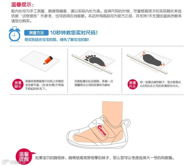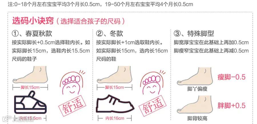 比如脚长在14-14.5的小朋友建议给孩子选内长15的,基本在科普理论上就合适了,脚胖的孩子脚长14的选内长15的(或者直接选魔术贴的!),脚瘦的宝宝可以选择比脚长14.5cm的即可。