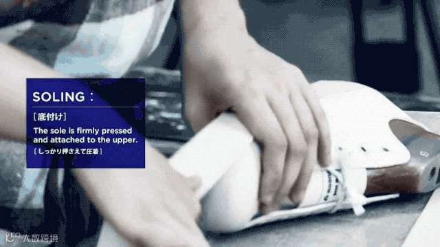 Moonstar的日本工厂,贴胶的工作都是由工人手工完成的,人手贴胶的力道是机器取代不了的,做出来的鞋子会有更好的支撑度。