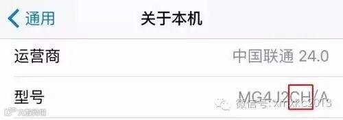 通过【设置】→【通用】→【关于本机】,获取手机型号。最后斜杠前面两位,其中CH是中国大陆行货,ZP是香港版,LL是美版,J是日版……