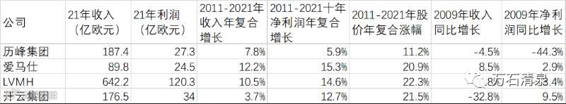 最后说可能的风险。目前能看到的两个风险,一个是中国如果持续疫情管控可能带来的至少今年销售的疲软,另一个是全球经济陷入衰退。第一个应该还比较可控,因为从最新披露的一季报来看,中国以外其他地区的增长显然能弥补中国的疲弱。第二个不好说,但是如果我们看最差的时候,即09年的时候,就能发现只有爱马仕是欧洲奢侈品唯一一家能扛过去、即实现收入利润双增的公司(开云虽然09年收入大减,但是利润还有增长,猜测可能有部分非经常的损益。)