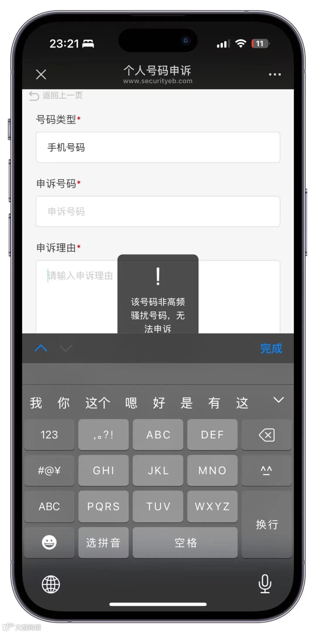 页面会提示该号码是否被本平台标记。如提示被标记,根据提示操作即可。