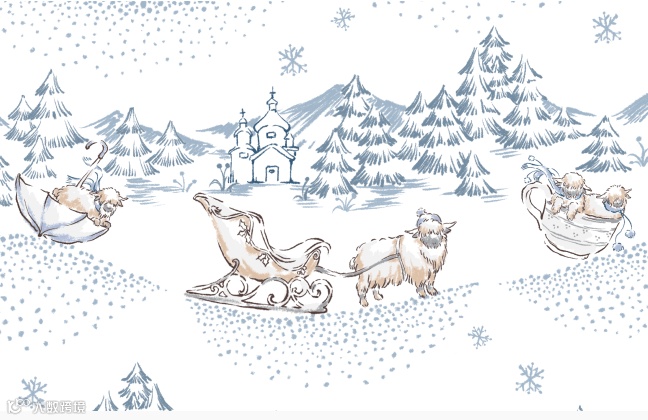 落下初雪时,山神兽就会现身。蹄印所过之处,积雪会自动铺成道路,欢迎孩子来做客。
