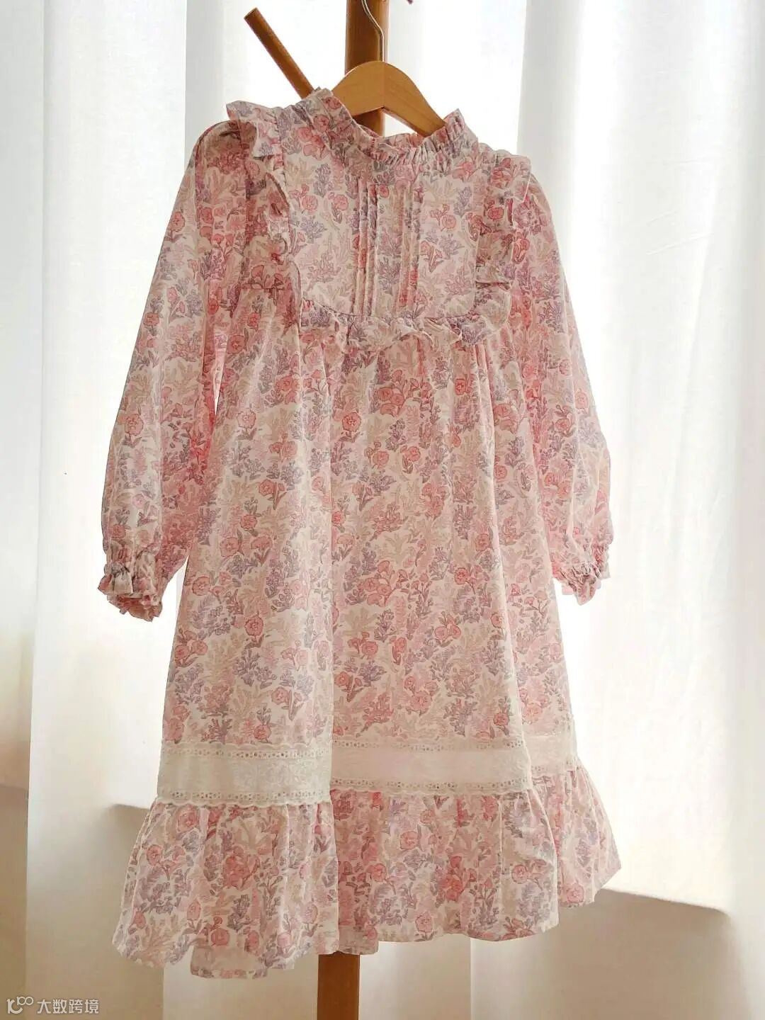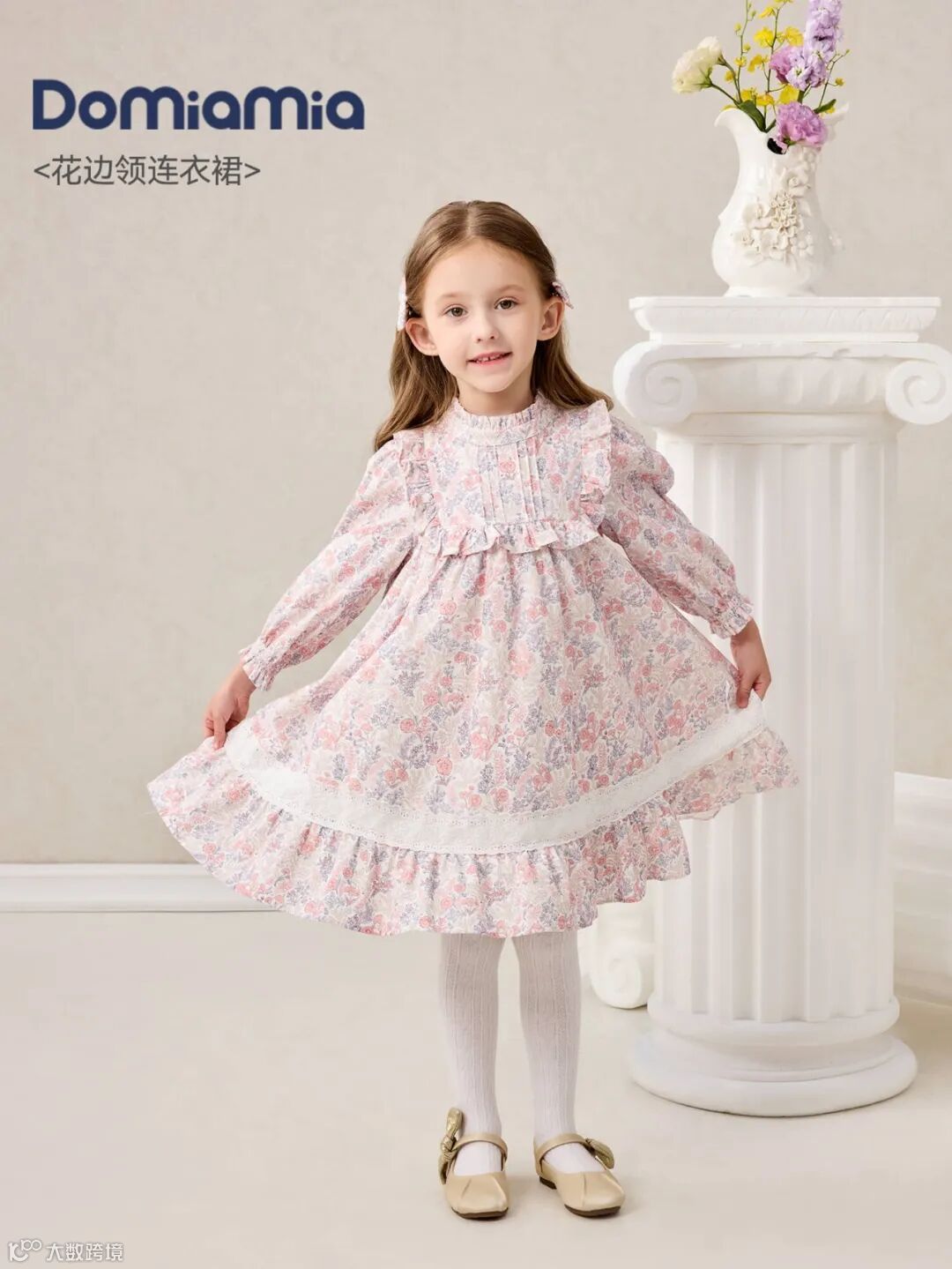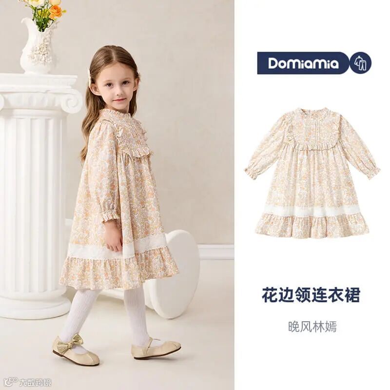 Domiamia梭织长袖花边领连衣裙