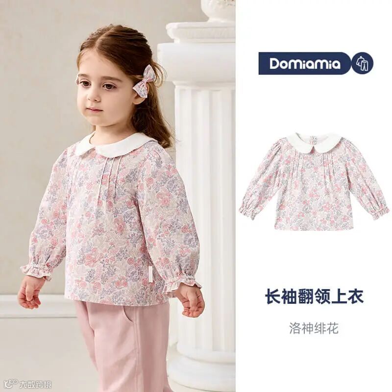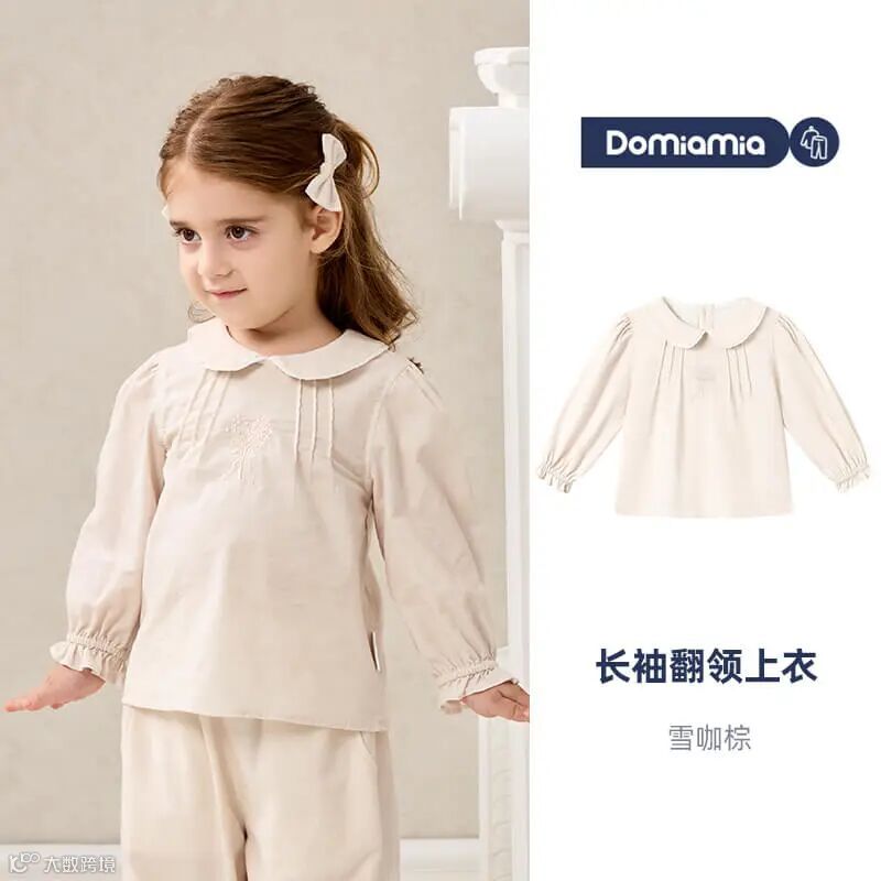 Domiamia全棉坑条长袖花边领上衣