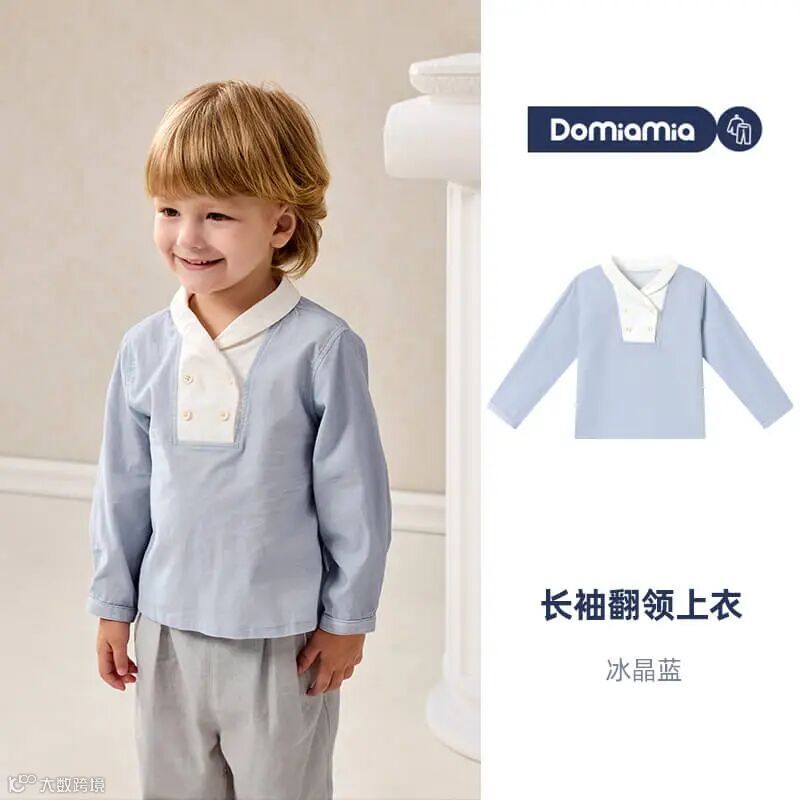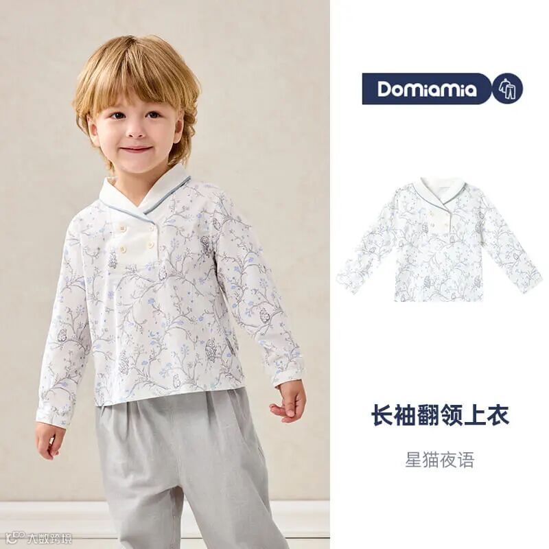 Domiamia全棉坑条长袖翻领上衣