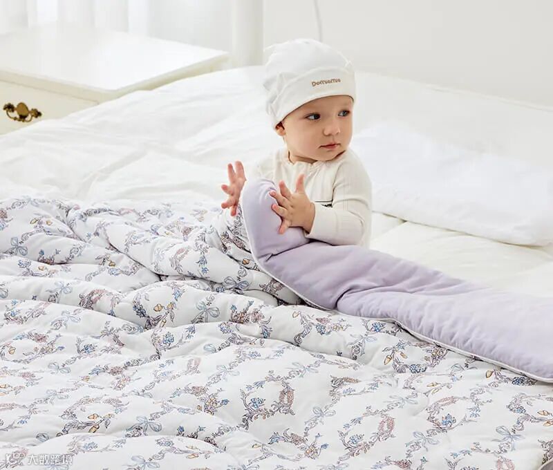 而且不仅是睡感好,还防尘螨、防过敏,敏感体质的宝宝也能直接盖,可以随便蹭,不用套被罩。