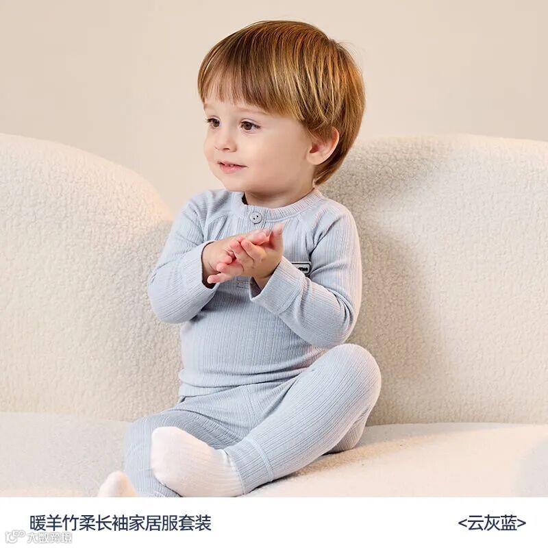 用的是 32S 羊毛抽针罗纹,添加了进口美利奴羊毛,以及天然竹纤维。摸起来,既有羊毛的保暖轻弹,又有棉的柔软亲肤,还清爽透气,能让孩子从初秋穿到开春。