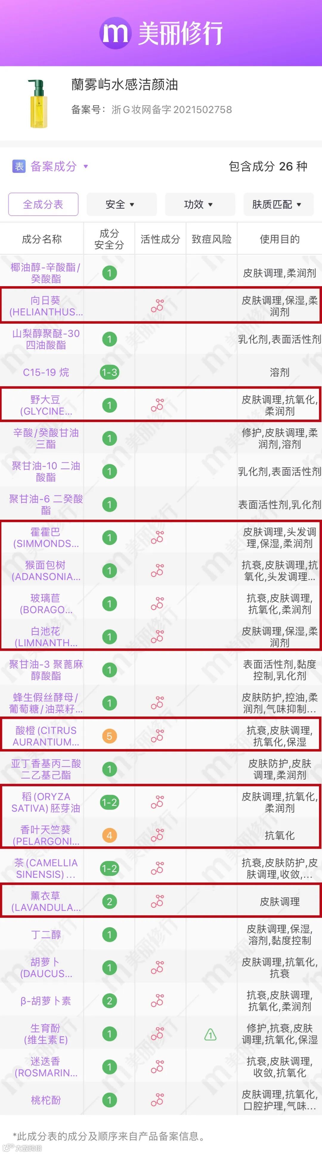 它含有的植物油脂种类和兰水感卸妆油很不一样,更侧重于补充油脂和滋养抗老。