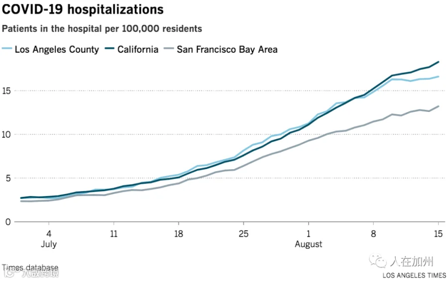 虽然整个医疗系统不像加州秋冬高峰期间那么拥挤,当时接受专业护理的新冠患者大约是当时的三倍,但医院感到了压力。