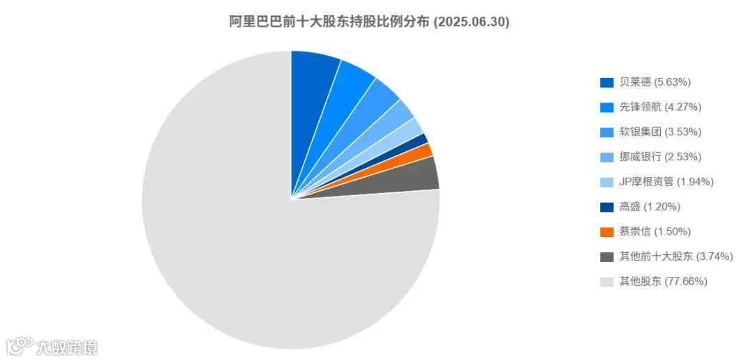 阿里巴巴最新十大股东名单显示,贝莱德(BlackRock)以超5%持股稳居第一,先锋领航紧随其后,机构投资者仍主导阿里股权结构。