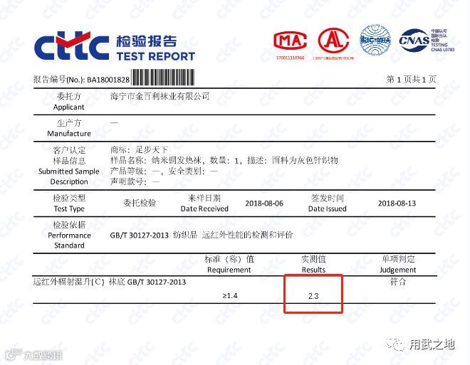 也许你还在质疑一双袜子有这么神奇,那是你多虑啦哈,国家权威机构的发热效果,质检报告:发热2.3度