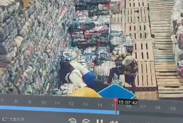 监控画面:两名安工按住受害同胞的头